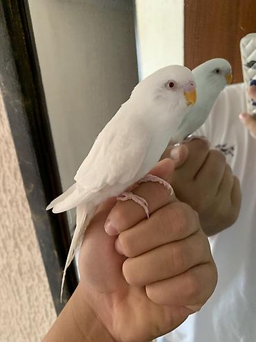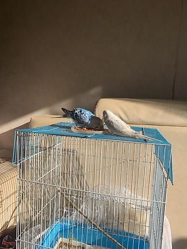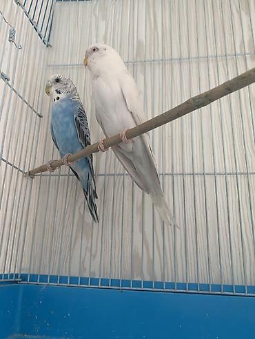 Попугаи-волнистые, пара. - Окрас: один белый (светлые лапки и клюв)