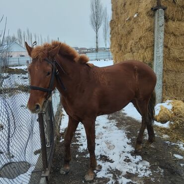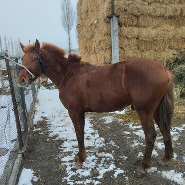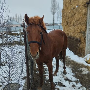 Продаётся лошадь рыжей масти (мерин/жеребец по фото не уточняется), средний рост, крепкого телосложения. На фото видно: