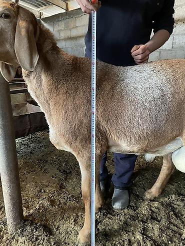 Овца кочкорик 10 месяцев рост 90 уши 20 линия широкого - Порода/тип: крупная овца с длинными отвислыми ушами, однородная светло-рыжая руна. - Пол: самка (виден развитый вымяной аппарат). - Телосло...