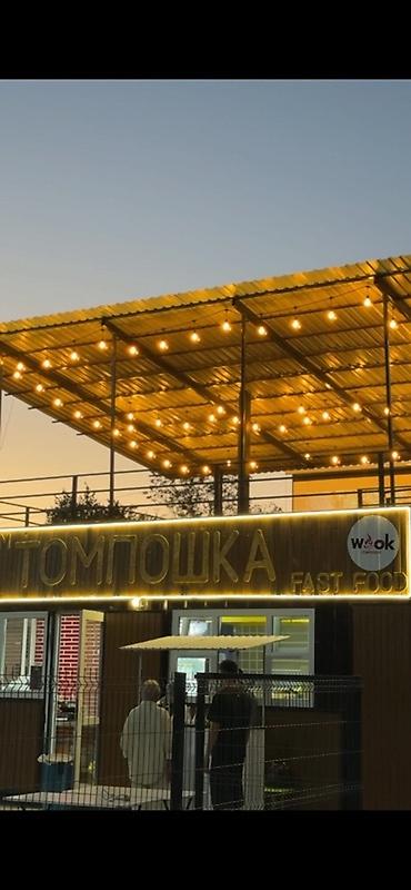 Находится в центре за памятником ориентир Американские горки, подключено 3 фазы электричество на 15 кВ . Перспективное развивающееся место. Земля в аренде, контейнеры в собственности. В fast food оборудована полноценная кухня с рабочей зоной из нержавеющей стали, включающей мойки, столы для приготовления и хранения продуктов. Установлено кухонное оборудование, в том числе холодильники, морозильные лари и плиты. Для посетителей предусмотрена открытая терраса с навесом, с искусственным газоном, пуфиками и проектором для просмотра фильмов, а также декоративное освещение гирляндами. Все остальные вопросы по телефон