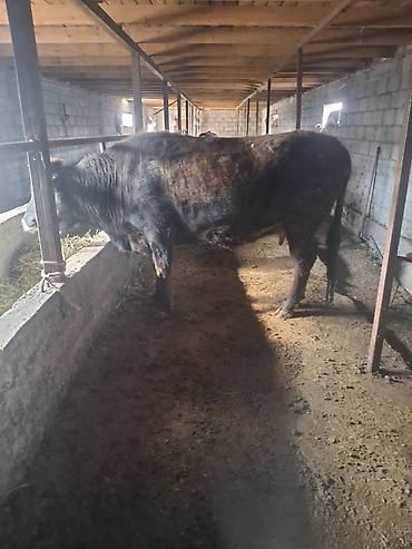 карова мясного направления. - Крупное телосложение, крепкий костяк, развитая мускулатура. - Окрас серо-бурый, рогатый. - Содержится на привязи в крытом стойле, кормление из бетонной кормушки. - По...