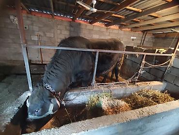 срочно срочно Бык (крупный рогатый скот), черный окрас, рогатый. На ушах — бирки идентификации. Содержится в стойле, на привязи. Подходит для откорма или племенной работы. Крепкое телосложение, ши...
