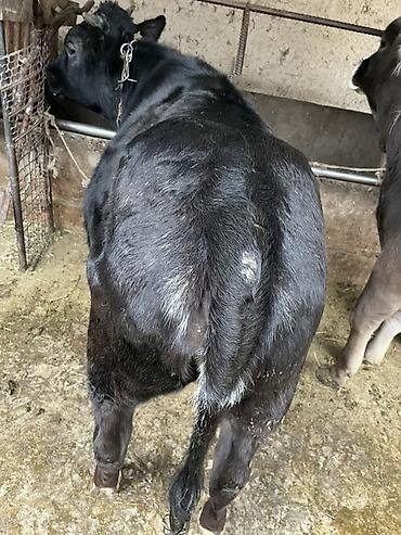 Бык мясного направления. Зару - Крупный, мощный экстерьер, широкий зад, хорошо развитая мускулатура. - Окрас темный, плотная конституция, ровная линия спины. - Содержится в стойле, приучен к привя...
