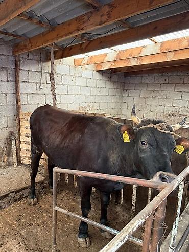 Продаю бычок полтора года по цена 145.000всем вопросам звоните - Окрас: темно-каштановый/черный, светлая отметина на носу. - Рога короткие, ровные. - Телосложение крепкое, развитая грудь и окорока...