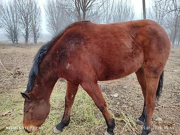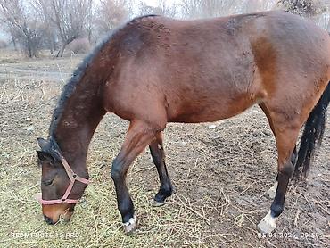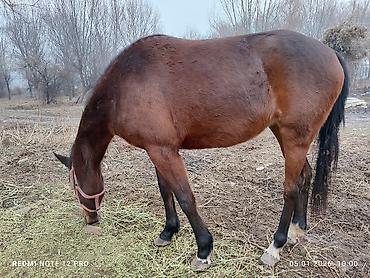 Салам алейкум продается лошадь жеребец 4 года адрес г. токмок Рост 155 см Жеребец темно-гнедой масти с отметинами на задних ногах (светлые чулки). Крепкий корпус, высокая шея, выраженная мус...