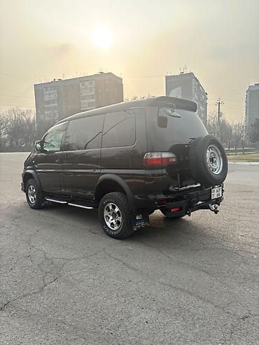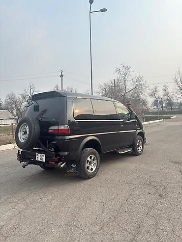 Mitsubishi Delica минивэн, светло-голубой цвет кузова с серебристым нижним обвесом. Киргизские номера KG 01 (744 AXX). Кузов — 5‑дверный, сдвижная боковая дверь справа. Задняя дверь — вертикальная,...