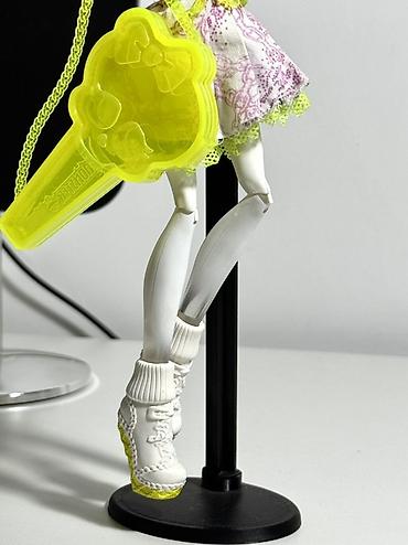 Высота куклы стандартная для Monster High (около 28 см). Подходит для коллекционирования и сюжетных игр: подвижные суставы рук и ног позволяют задавать разнообразные позы. Яркая неоновая палитра и множество съемных аксессуаров для стилизации образа.