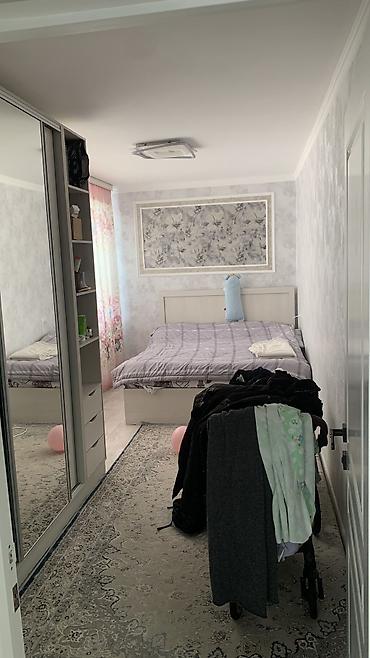 - Спальня: двуспальная кровать, стеновая панель/панно, встроенный шкаф‑купе с зеркальными дверями и открытыми нишами.