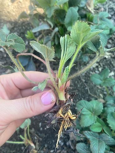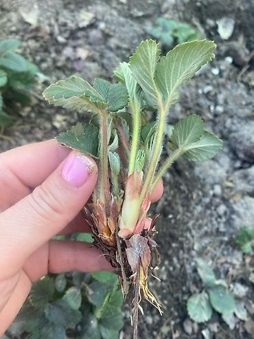 Рассада клубники (садовой земляники), выкопанная с открытой корневой