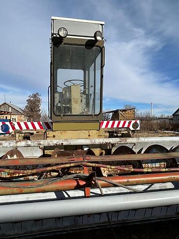 - Передняя навесная жатка с шнеком и мотовилом для укладки массы в валок. Ширина захвата — ориентировочно 4–5 м.