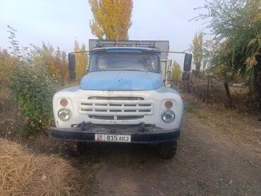 Самосвал ЗиЛ (классическая кабина «бычок/ЗиЛ-130» семейства), бортовой кузов с гидроподъёмом. Характеристики по фото: - Колёсная формула 4x2, задняя тележка с сдвоенными колёсами. - Металлический ...