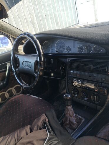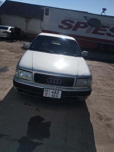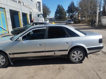 Audi 100 C4 седан, серебристый цвет, на киргизских номерах (KG, регион G5, номер 482 AEG).