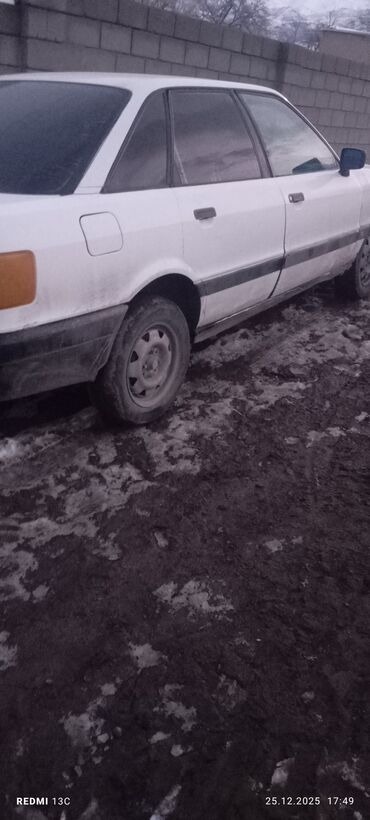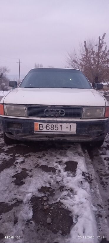 Подходит для повседневной езды, прост в обслуживании, недорог по расходникам и ремонту. Классическая надежная платформа Audi 80 с хорошей управляемостью и устойчивостью на зимней дороге. Номерной знак на фото для идентификации автомобиля. Дата съемки: 25.12.2025.