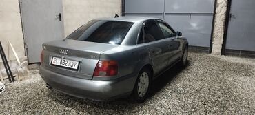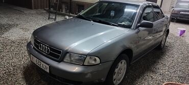 Audi A4 седан, серый металлик. Кузов B5, эмблемы A4 и 1.8 на крышке багажника. Передний привод, бензиновый мотор 1.8. Кузов 4‑дверный, тонировка задних стекол.