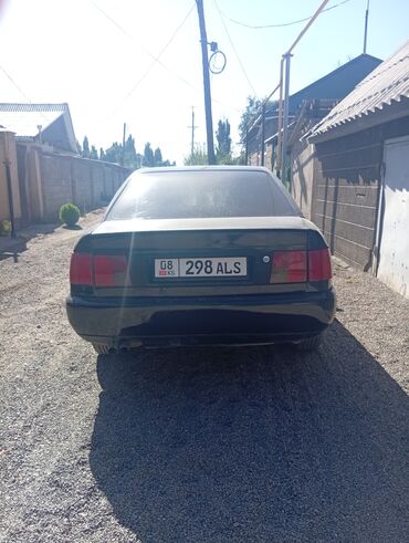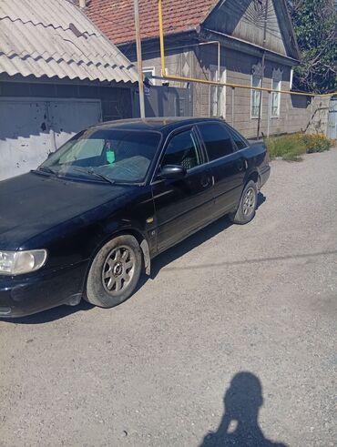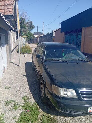 Audi A6 седан, черный цвет, номер KG 298 ALS (регион 08). Кузов классического дизайна C4, 4 двери, тонированные стекла, зеркала и ручки в цвет кузова. Передняя оптика с прозрачными стеклами, фирменная решетка с эмблемой Audi. Двойной выхлоп сзади. Литые диски, шины дорожного типа. Антенна на крыше, брызговики. Салон виден через стекла: передняя панель темная, на лобовом — аксессуар-освежитель.