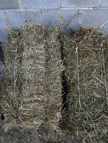Сено в тюках - Натуральное луговое сено, спрессованное в тюки удобного размера для хранения и кормления. - Состав: разнотравье с включением злаков; видны зеленые фрагменты, богатые питательными ве...