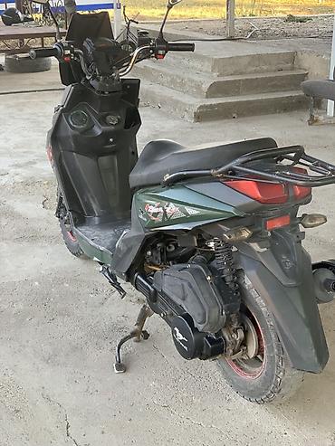 - Кузов: компактный городской скутер с агрессивным дизайном, цвет — тёмно‑зелёный с графикой.
