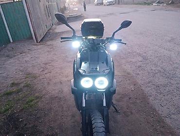 Подойдет для ежедневных городских поездок и доставки: удобная посадка, яркий свет фар, вместительный кофр и информативная панель. В комплекте на фото также виден мотошлем (наличие/комплектацию уточняйте по изображениям).