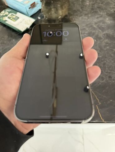 - Дисплей с вырезом Dynamic Island, поддержка Always-On (на экране видно время 10:00 и уведомления).