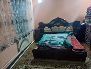 - Кровать двуспальная с высокой фигурной спинкой и мягкими вставками на изголовье.