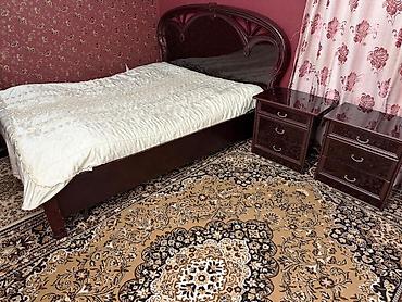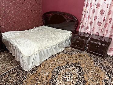 - Двуспальная кровать с высокой изогнутой спинкой с декоративными вставками.