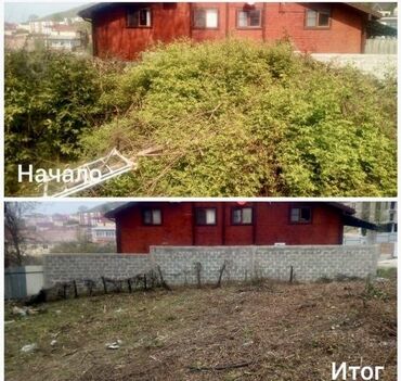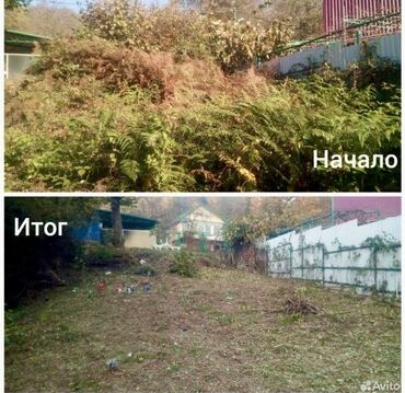 - Раскорчевка кустарника и поросли, покос зарослей, очистка территории от бурьяна (до/после на фото).