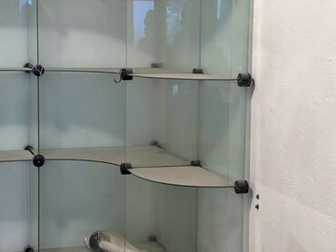 В комплекте: стеклянные полки и вертикали, задние панели, соединительные крепления/узлы.