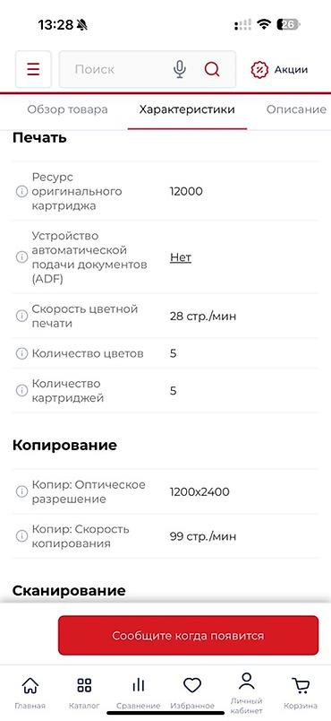 - Скорость цветной печати до 28 стр./мин (указано на характеристиках на фото).