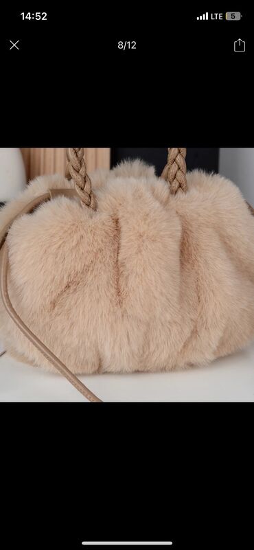 Теплые плюшевые сумочки с цепочкой - Материал: мягкий «шубный» текстиль (тедди) с крупной фактурой, накладной овальный патч с объёмными буквами BB из эко‑кожи - Жесткий клапан на поворотной защёлк...