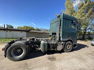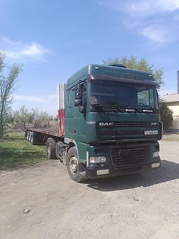 - Марка/модель: DAF XF (седельный тягач) с тралом/площадкой под перевозку негабарита и длинномеров