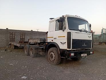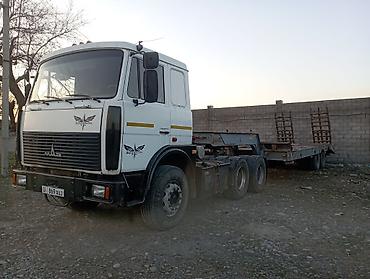 Комплект: седельный тягач МАЗ + полуприцеп-платформа/бортовой. Готов к работе в составе автопоезда для перевозки тяжелых и габаритных грузов.