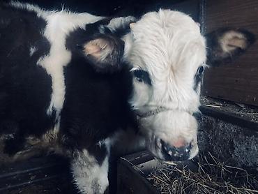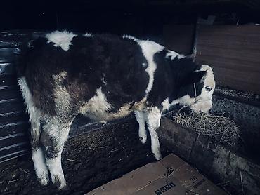 Телёнок мясного направления - Порода: помесь мясных пород (тёмно‑бурый окрас). - Возраст: молодой телёнок. - Идентификация: ушные бирки установлены. - Содержание: стойловое, изолированное помещени...