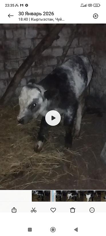 Продаю Пародистый бычок Бельгийский шырокий плотный Камолый 3 дней цена 75 тыс! Оканчательно.одадим Такмаке Званите?серо‑чёрно‑белый. - Содержится в стойле на подстилке из сена. - Спокойный, ручной...