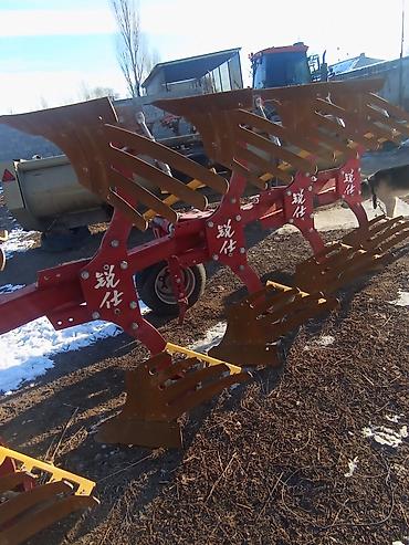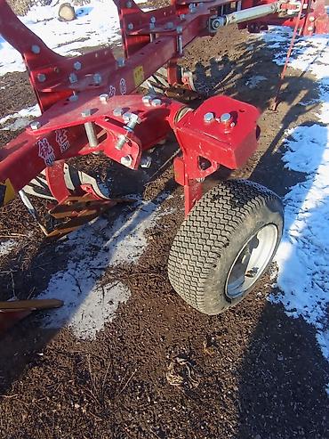 - Плуг навесной многокорпусный (на фото — 5-корпусный) с предплужниками/отвалами решетчатого типа, рассчитан для глубокой основной обработки почвы. Удобная регулировка угла атаки и ширины захвата, колесо опорное/транспортное.
