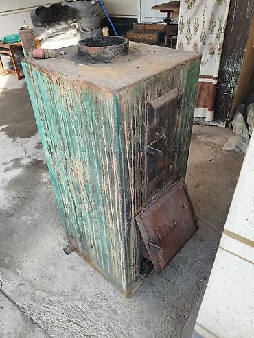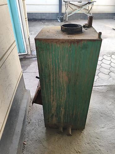 Твердотопливный водогрейный котел (самодельный/металлический), напольный.