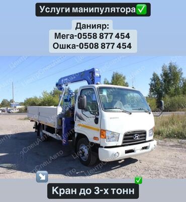 Кран-манипулятор. Доставка грузов по городу и КР. -Грузоподьёмность крана до 3х тонн - Грузоподьёмность борта до5 тонн - Длина борта 5м - Ширина борта2,1м - Вылет стрелы 10м - Доставка издел...