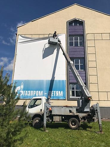 Услуга автовышки (мини-автовышка на базе Kia) - Высотные работы с люлькой: монтаж/демонтаж рекламных конструкций и вывесок, фасадные работы, остекление, электромонтаж на высоте, мойка и обслуживан...