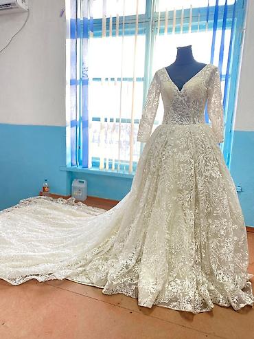 Вечернее платье, Пышное, Длинная модель, С рукавами, Шлейф, 3XL