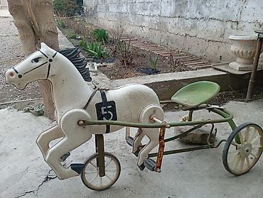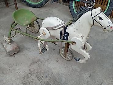 - Конструкция: металлическая рама с сиденьем-«тазиком», передняя часть в виде лошади с тремя колесами (два сзади, одно спереди), соединённой тягами с педальным механизмом. При вращении педалей лошадь «скачет», а тележка едет.