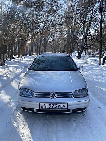 Volkswagen Golf IV, серебристый хэтчбек 5 дверей. Особенности и оснащение: - Кузов: компактный хэтчбек, 5 мест, серебристый цвет, заводская оптика, тонировка стекол - Колеса: легкосплавные диски, ...