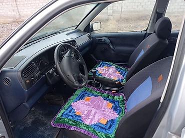 - Салон: тканевая обивка сидений, передние сиденья с накидками, синий/тёмный пластик панели и карт дверей