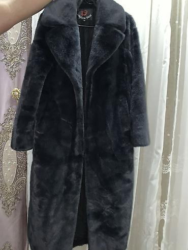 Шуба из эко-меха, темный графит/черный.