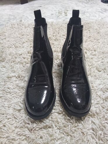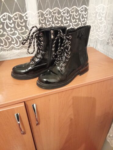 1) Шнурованные ботинки-берцы из лаковой кожи: