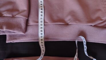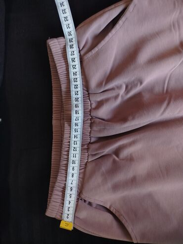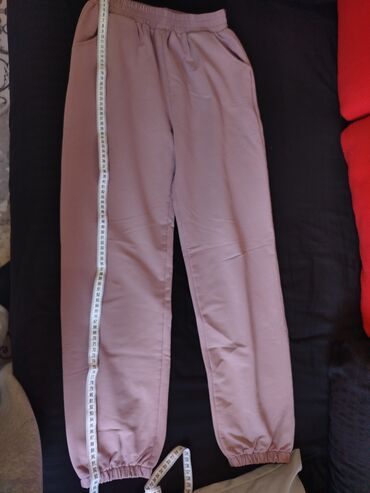 - Низ штанины с манжетой-резинкой; ширина штанины по низу по ленте ориентировочно 90–95 см в обхвате, при растяжении больше (см. замер на фото).