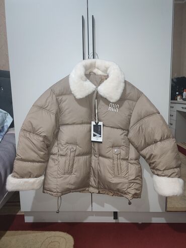 2) Куртка-пуховик бежевый с меховой отделкой: