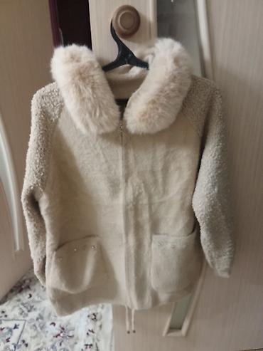 1) Бежевая куртка из мягкого «плюшевого»/шубного материала: