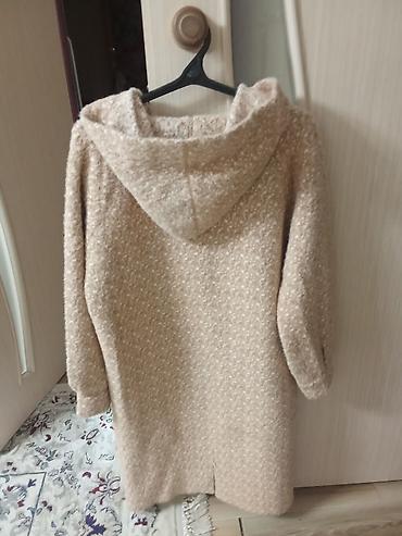 3) Бежевая пальто-накидка с капюшоном: