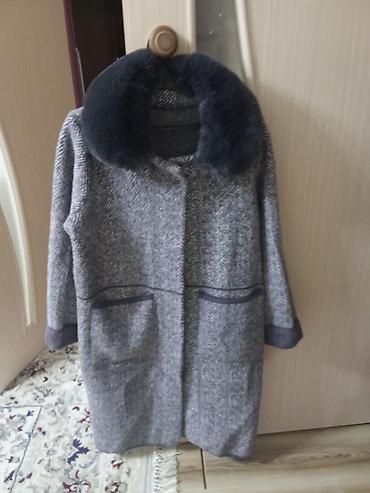 2) Серое пальто прямого кроя: