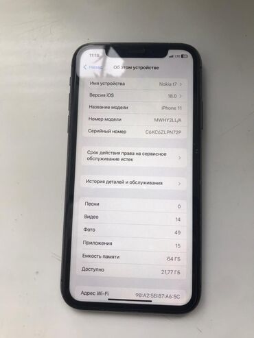 IPhone 11, 128 ГБ, черный Фейс айди работет Трутон есть! АКБ 83% Телефон не вскрывался В ремонте не был Память 128гб В комплект Чехол Оригинальный адаптер и шнур новый не вскрытый!!! - Память:...