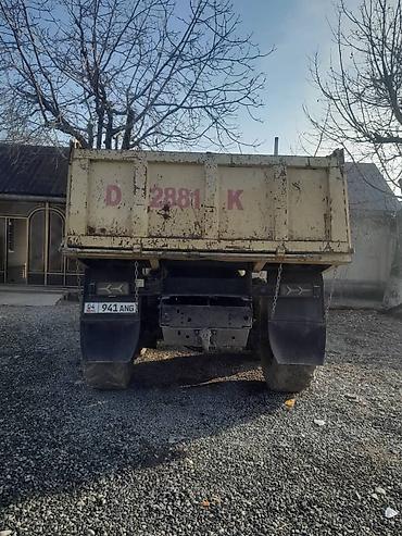 Самосвал с оранжевым кузовом, предназначенный для перевозки сыпучих материалов. Оснащен двойными задними колесами для улучшения устойчивости и грузоподъемности. Задние фонари и брызговики обеспечив...